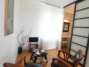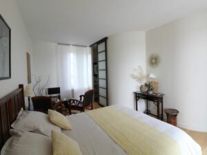 L’Ikebana est une chambre pour deux personnes ayant une terrasse avec une vue exceptionnelle sur la Loire. Elle comprend un lit double de 160, une salle de bain avec douche à l’italienne, sèche-cheveux et WC.